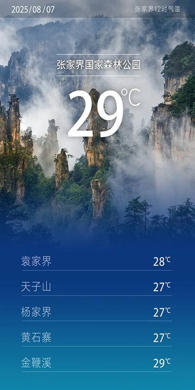 張家界景區(qū)今日天氣預(yù)報我市處于副高邊緣晴天間多云有陣雨或雷陣雨各大景區(qū)體感相對舒…